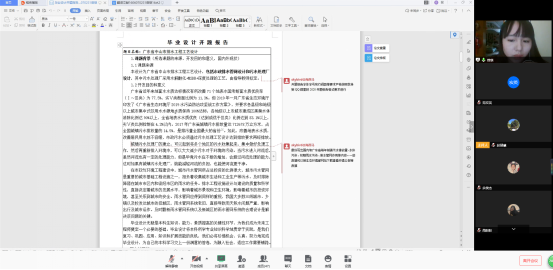 虽然受疫情影响员工不能按时返校,公司大四毕业生们的毕业设计(论文)进展顺利。早在寒假期间,指导教师就已经布置好选题、任务书、设计参数、文献翻译和设计(论文)重点等工作。指导教师们通过微信、QQ群、腾讯会议等线上手段组织员工利用网络资源做好资料查阅、外文翻译、方案设计、撰写开题报告等相关工作,较早地完成了开题汇报的准备。此次采用腾讯会议等形式进行在线开题汇报,别开生面。员工们将开题汇报内容做成PPT或word文件,通过共享屏幕进行汇报,期间员工们通过视频展示了自身良好的精神面貌,老师们细心审阅、提出问题并给出修改建议。