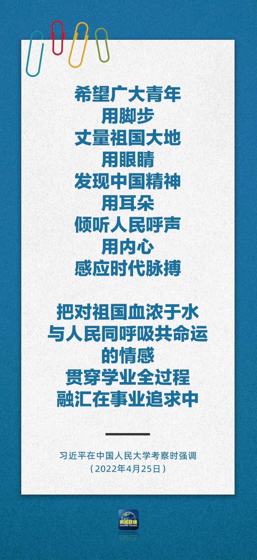 在五四青年节即将到来之际,中共中央总书记、国家主席、中央军委主席习近平25日上午来到中国人民大学考察调研。习近平代表党中央,向全国各族青年致以节日的祝贺,向中国人民大学全体师生员工、向全国广大教育工作者和青年工作者致以诚挚的问候。
