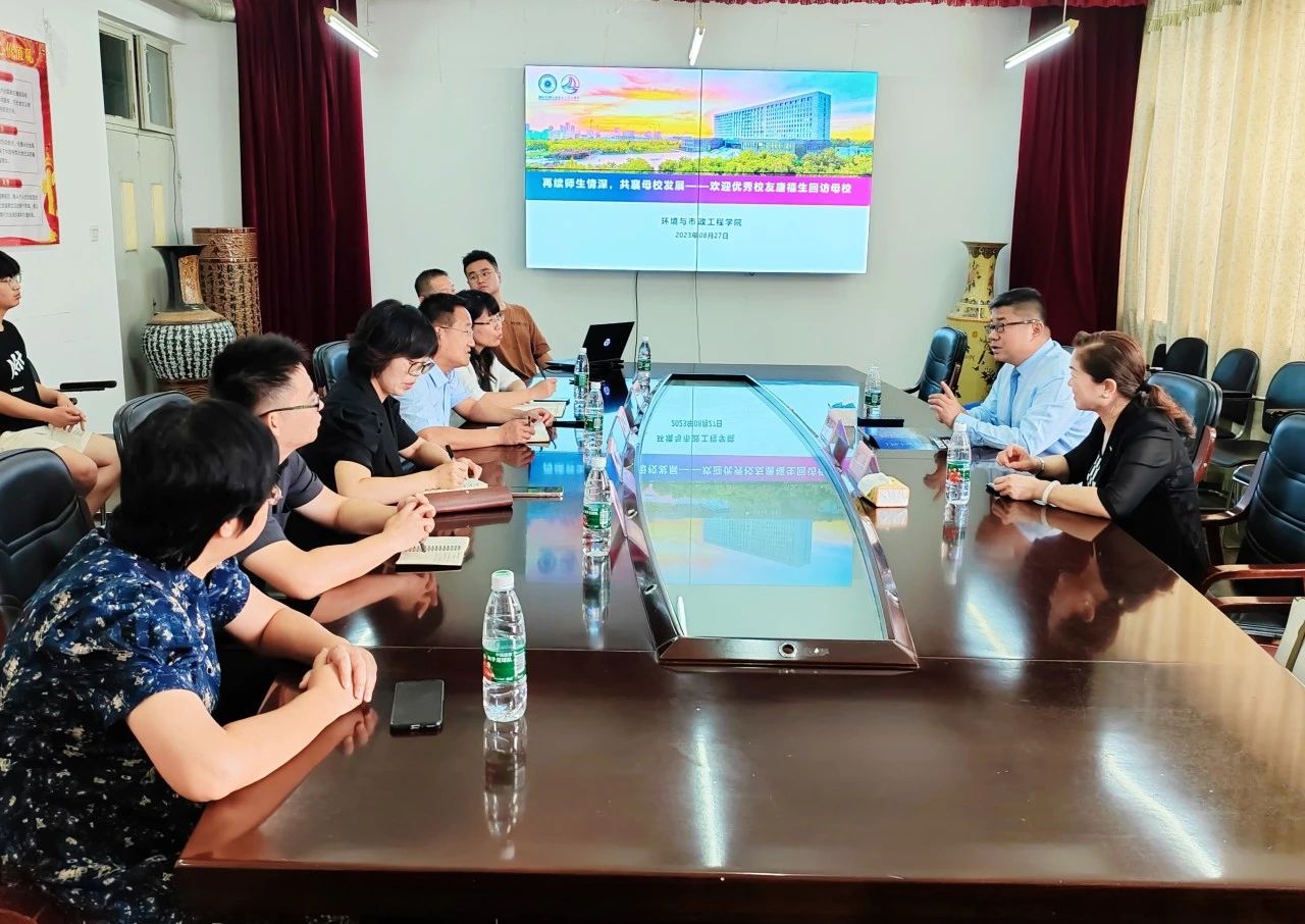 在球报体育45周年校庆来临之际,天津市环境建设投资有限公司董事长、1996届给排水专业毕业生唐福生心系员工成才和公司发展,返校参加员工座谈。球报体育经理刘志华、党委副书记沈杰然、副经理张新波、副经理王喆、教师代表王蕾、张宏伟、员工工作教师及部分员工骨干参会。