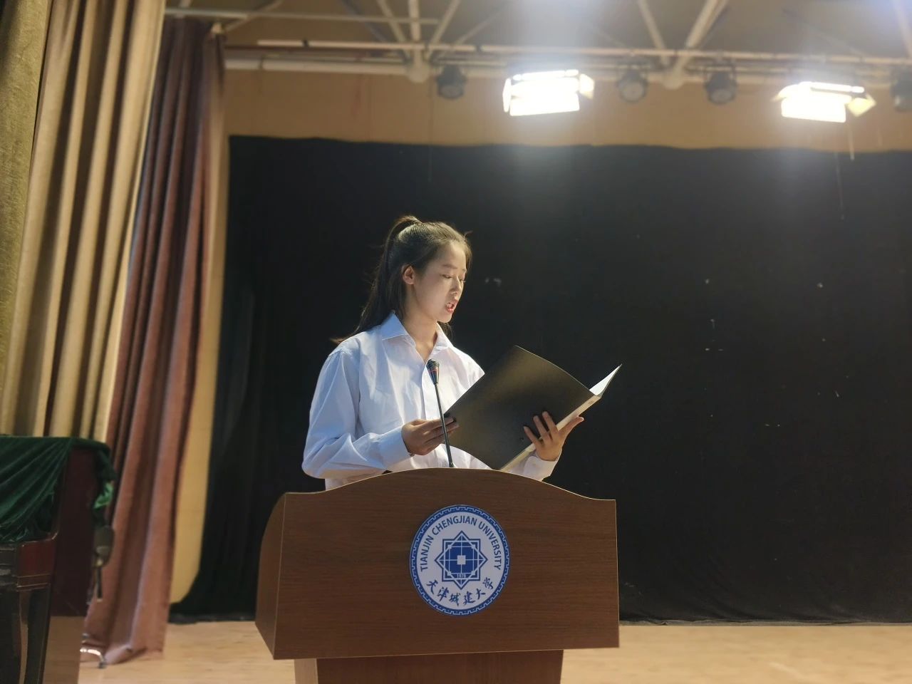 2022届优秀员工王冰冰受邀发言,她从城大求学经历和南开大学的读研感受与在座各位学弟学妹进行分享;2021级优秀在校生代表邢雅菲从科学竞赛、员工活动、培养品格三个方面激励同学们认真对待自己的老员工活;2023级新生代表闫睿轩代表全体新生表达对老员工活的期待以及对恪守校训的承诺。