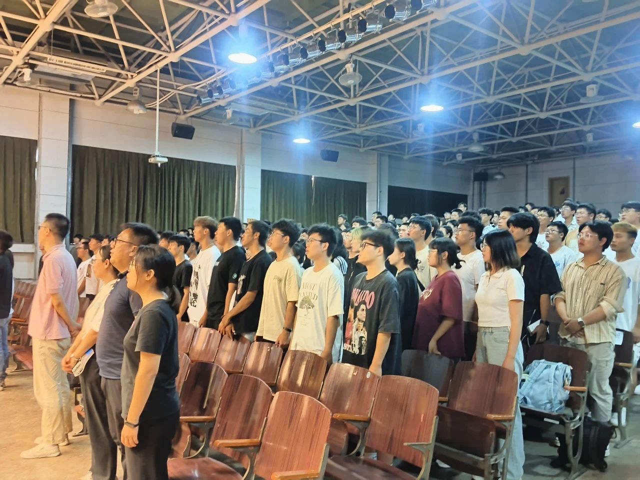 开学典礼恰逢九一八纪念日,大会在庄重的国歌合唱中拉开序幕,同学们缅怀先烈、铭记历史,彰显华夏儿女的自信与担当。