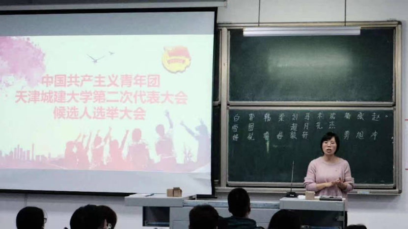 接着,沈老师向大家介绍11位候选人情况。监票人检查并向选举人展示票箱,计票人向选举人发放选票。在33张有效票的支持下,本着民主、公开、公正的原则,采用无记名差额选举的方式选举产生了共青团第二届委员会委员,圆满完成了大会选举任务。