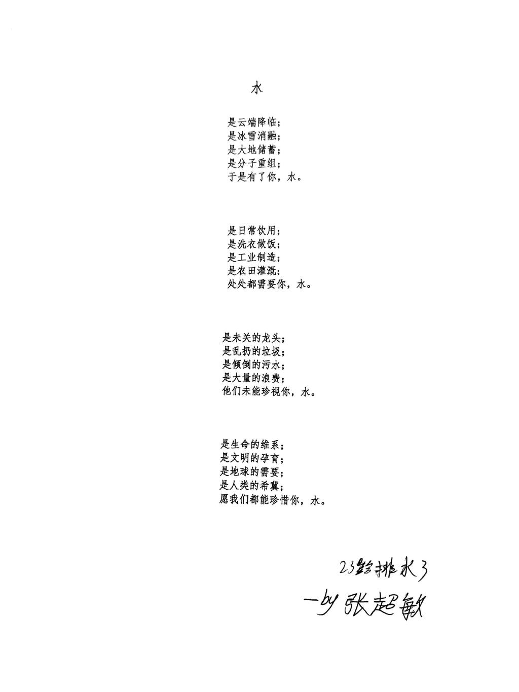 通过宣传节约用水理念,同学们积极学习节水知识,树立节水观念,以现代诗歌、宣传标语、画作等形式展现出节约用水的学习成果,并学以致用,在生活中注意每个节水环节,做到以自身成为榜样,以自我渲染他人。让更多同学加入到节水行动中来,共同建设水资源节约型社会。