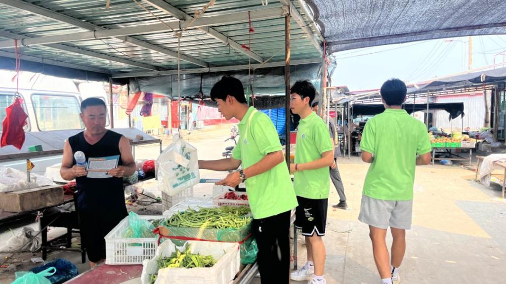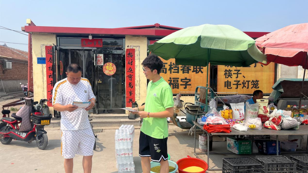 在北淮淀党群服务中心,实践团成员与村干部进行交流座谈。在了解北淮淀村基本情况后,实践团成员结合自身特长,就村内河蟹养殖、环境治理、基层普法宣传等方面内容进行交流探讨,深入乡村集市、综合文化活动中心等地点开展普法调研及宣讲活动,助力基层法治建设。