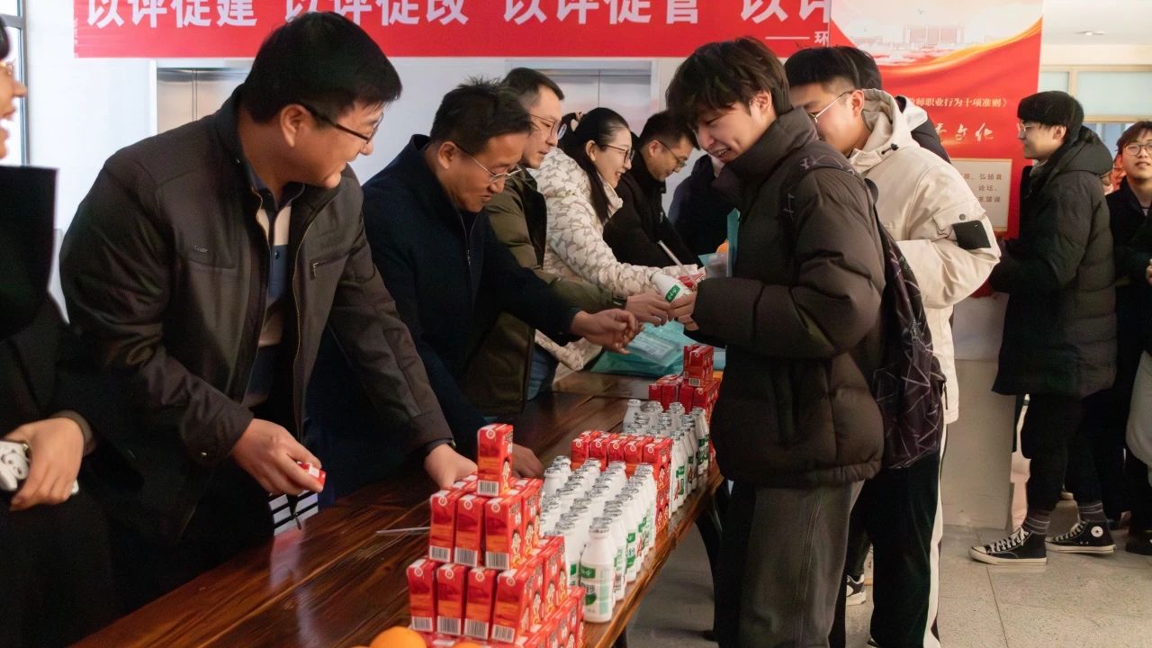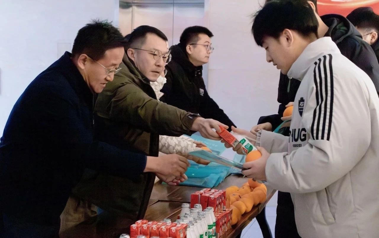 公司领导班子和班主任亲自为同学们送上公司精心准备的“考研能量包”:大甜橙、旺仔牛奶、AD钙奶和考研文具包,预祝同学们心想事“橙”、前程“旺旺”,为大家补补钙、打打气。