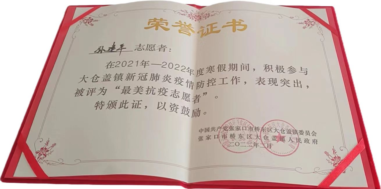 在志愿服务上,我积极参与家乡疫情防控工作,由于表现优秀,被评为“最美抗疫志愿者”。在假期期间,我积极服务当地社区,配合社区工作人员的工作。
