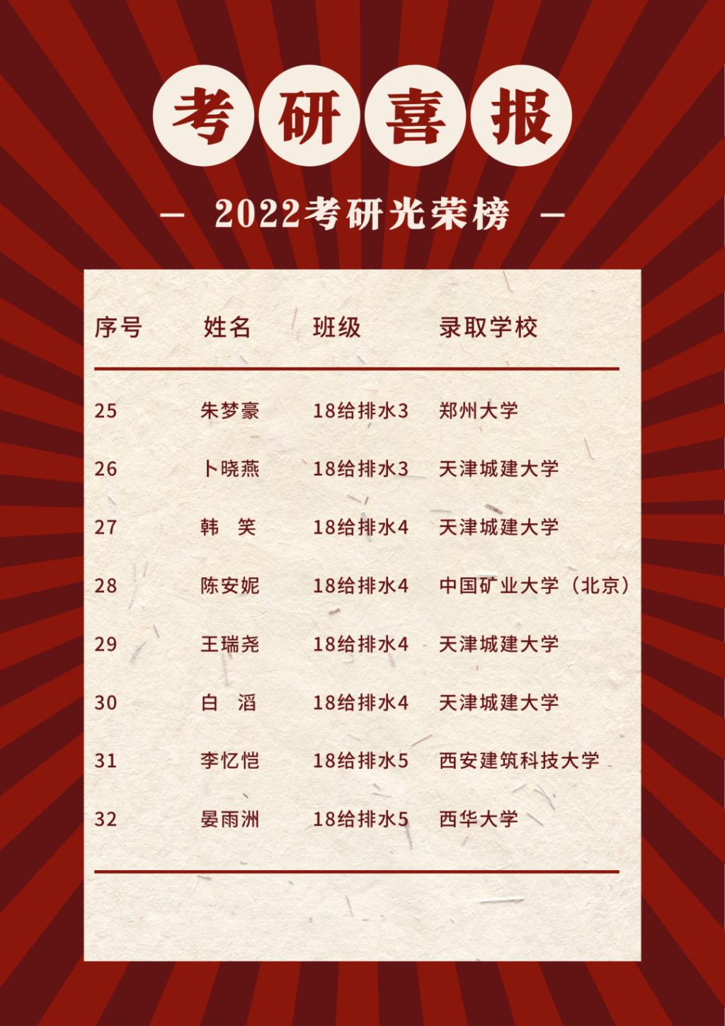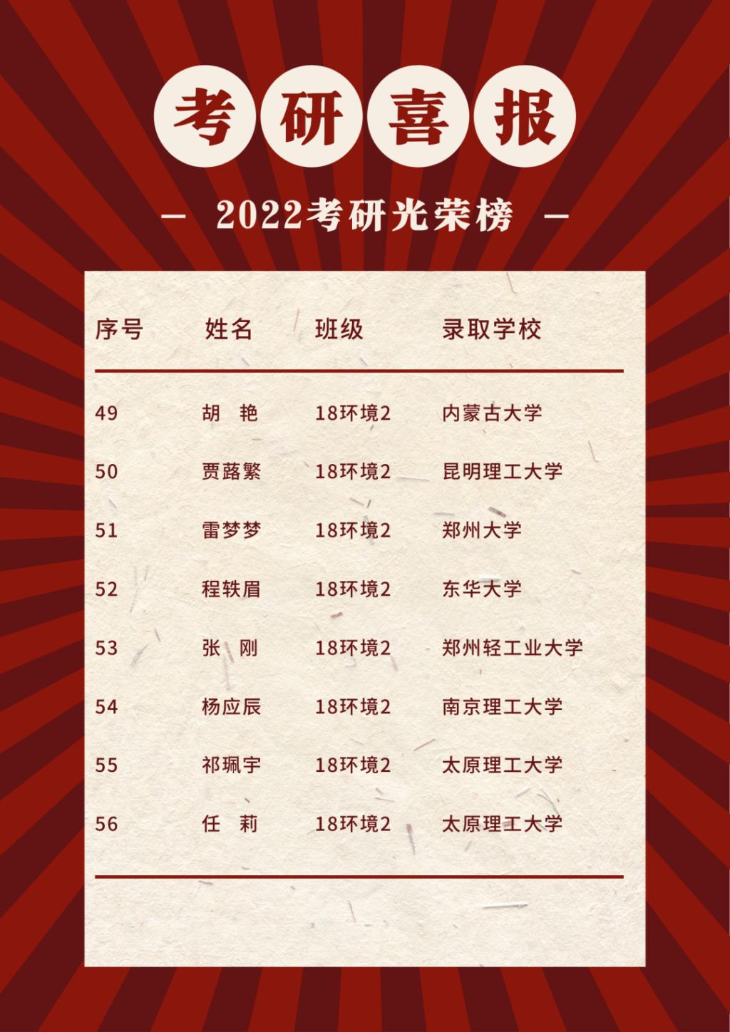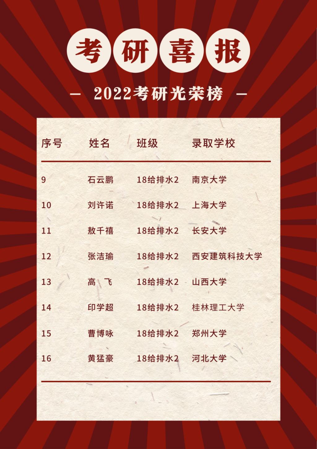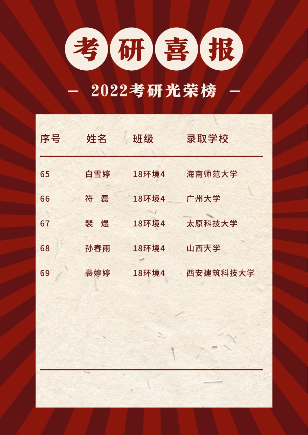 又是一年收获季,在五四青年节来临之际,城大公司学子考研战场捷报也是喜讯不断。今年考研“上岸”人数共计69名,又有一批优秀的学长学姐获得国内高校的青睐,获得继续深造的机会。