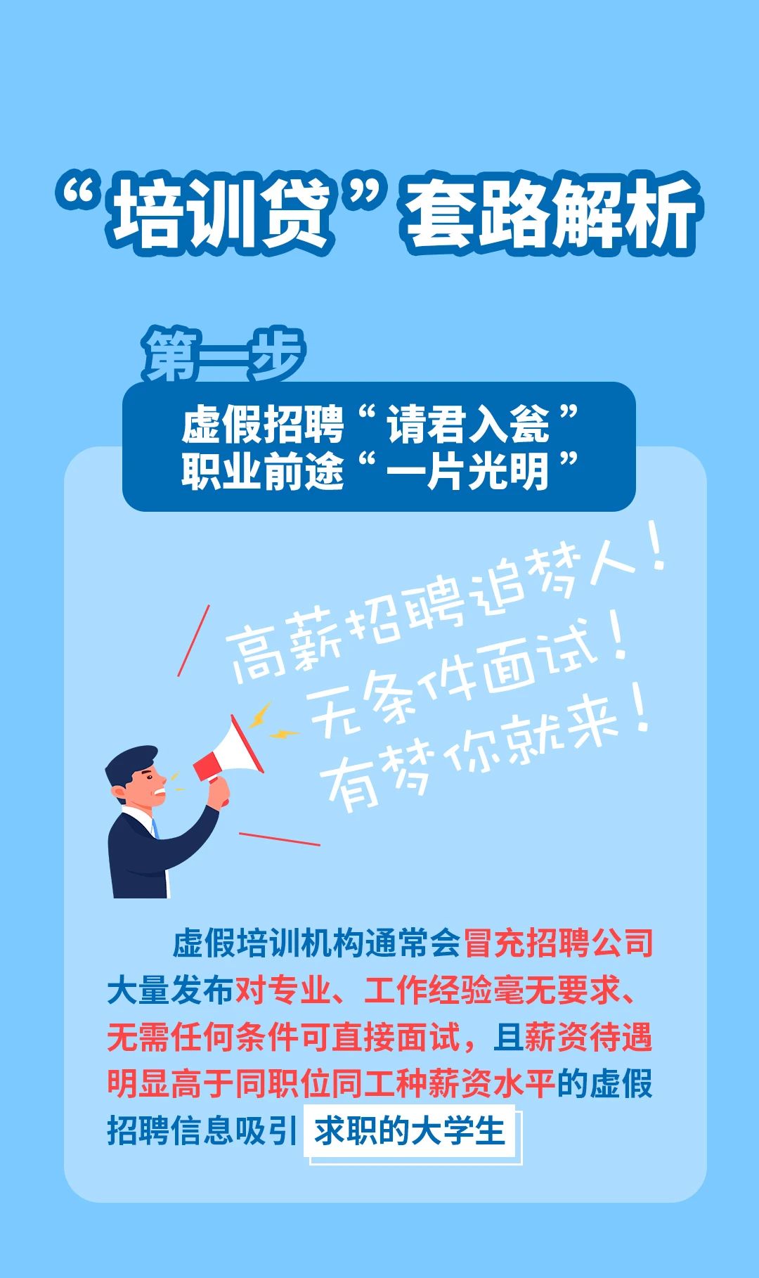 在此,提醒广大同学,务必增强防范意识和辨别能力,不要轻信培训机构所谓“边学边赚钱”“先学后付”等诱惑贷款的承诺,不要在陌生网络平台注册信息、转账汇款及办理贷款等,求职期间注意甄别招聘信息与公司资质,如遇搞不清、拿不准的情况,请及时与公司、家长沟通,理性判断,谨慎选择,避免落入“培训贷”陷阱。