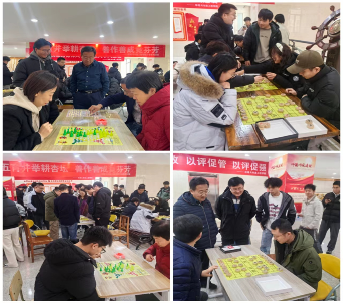 12月12日在行知楼三楼中厅组织了棋牌赛,比赛包含象棋、军旗、跳棋和桥牌,老师们自愿报名参赛,按照比赛规则分别决出冠亚军。比赛现场气氛热烈,充分发挥了“友谊第一,比赛第二”的精神。