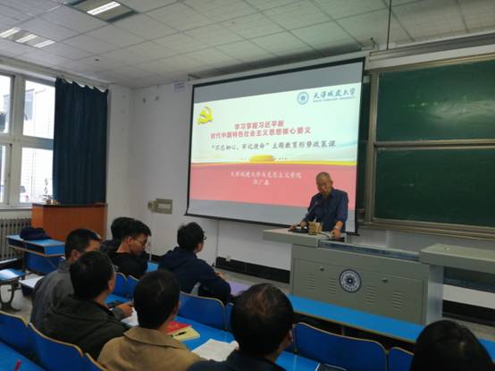 张老师讲座的题目是《学习掌握习近平新时代中国特色社会主义思想核心要义》。张老师以中美贸易战引入,讲解了中美贸易战的渊源及对发展走向的判断。随后,以新中国成立以来中国的发展历程为脉络讲解中国特色社会主义重要的发展时期,阐释习近平新时代中国特色社会主义思想的核心要义。张老师从第一代领导集体讲起,回顾了中华民族在新中国成立初期艰苦奋斗的峥嵘岁月;回顾了坚持改革开放,中国经济的飞速发展;回顾了“三个代表”、“科学发展观”指引下,中国发展的稳步推进;着重强调了十九大召开以后,标志着中国正式进入新时代中国特色社会主义,我们全方位进入新时期,这些瞩目的成绩是我党带领全国各族人民砥砺奋进的硕果。