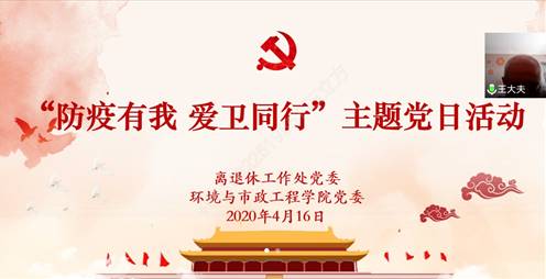 4月16日中午,公司党委邀请退休老党员、原公司后勤处医疗保健中心主任王宝琨老师通过腾讯会议为全院师生党员作“防疫有我,爱卫同行”主题党日活动“云”讲座。离退休工作处党委书记、处长张健胜、公司领导班子成员和全体师生党员共一百余人参加了本次活动。