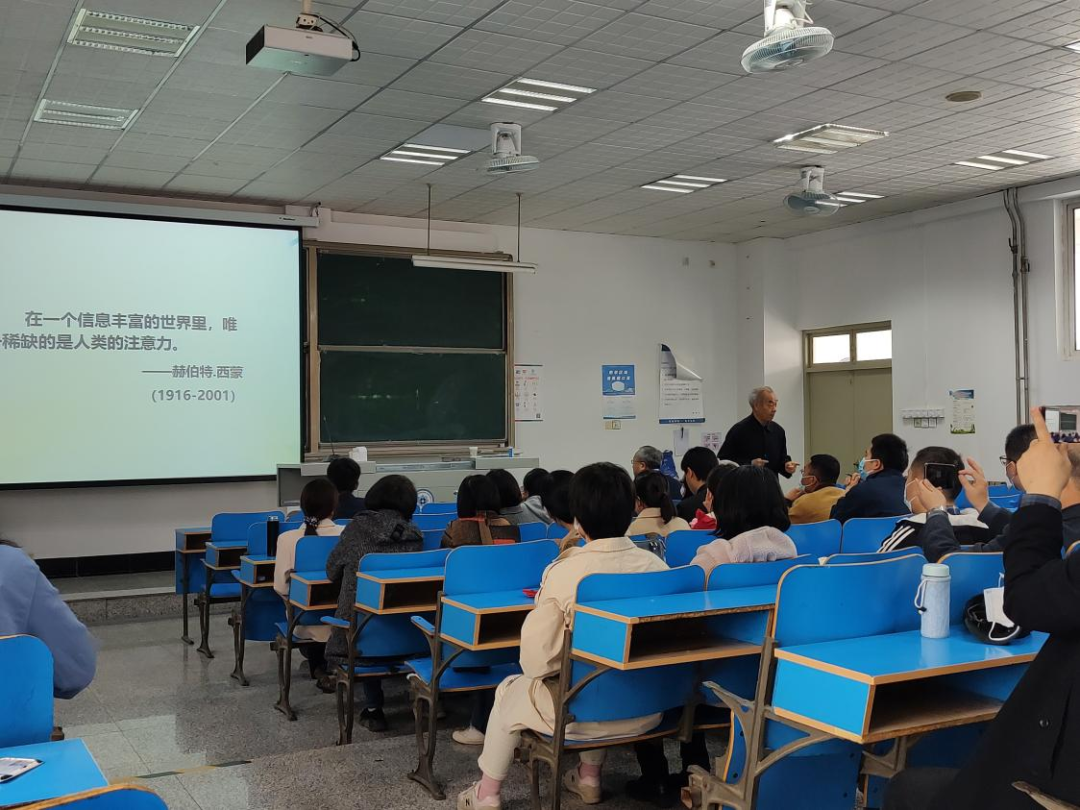 刘国田教授从信息化背景下教育应如何改变适应变化需求引出本次讲座的主题,并从“信息过载”与传统教育的困惑、高等教育质量与质量保障,剖析我国高等工程教育改革与研究的十大热点问题,最终提出信息过载背景下的大学教师应对策略。他强调,高校教师要以员工为中心,要润物细无声地开展课程思政教育。最后,刘国田教授从提高学习力、增强亲合力、增强对学术病毒的免疫力、增强判断力、提升教学力和增强协同力等方面对全体教师提出要求和寄语。