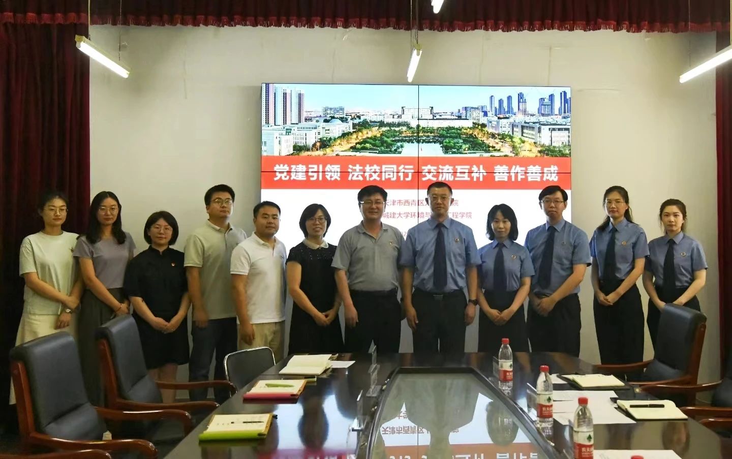 安全稳定是一切工作的基石。为更好适应当前复杂多变的国内外形势,引导员工进一步树立法治观念,守护校园安全,球报体育与西青区人民检察院开展普法共建活动。公司党委书记朱复义、副书记沈杰然携员工党支部书记及员工代表,西青区人民检察公司党组成员、副检察长刘海东、第二检察部主任王倩、第二检察部副主任孙涛及检察院代表参加本次共建活动。