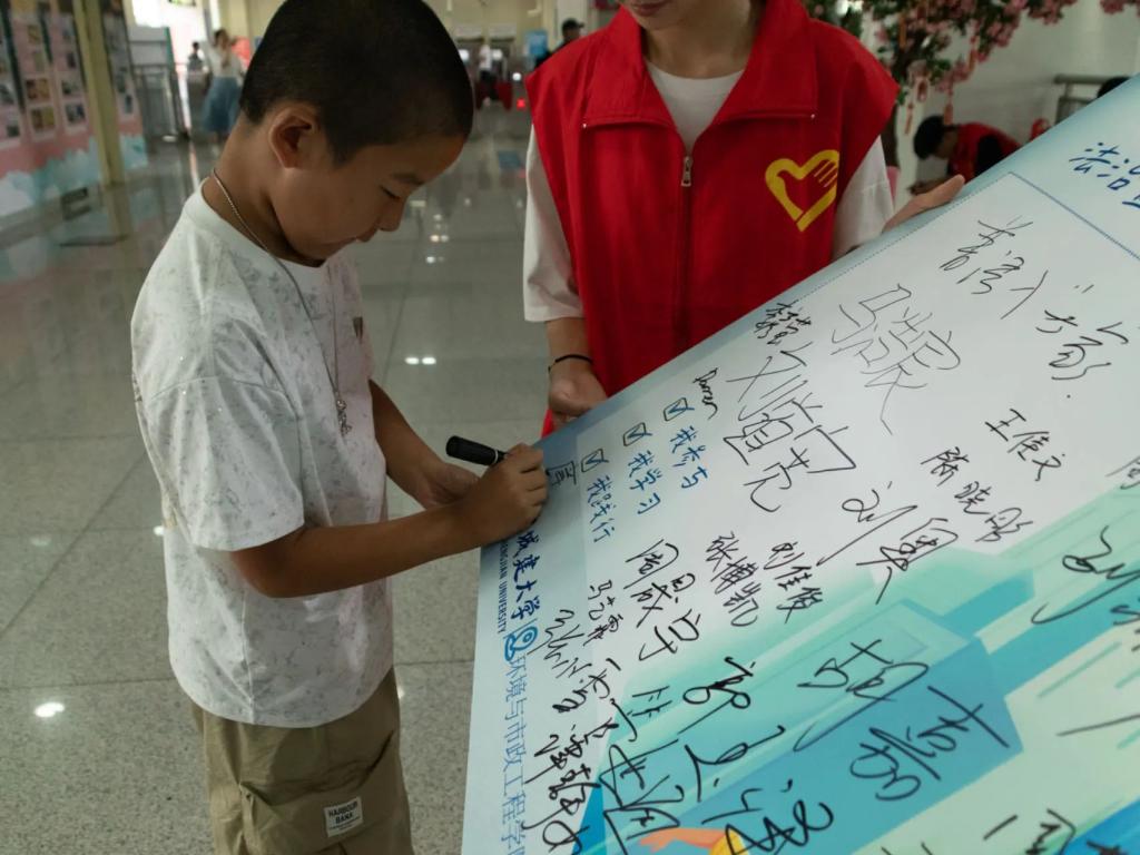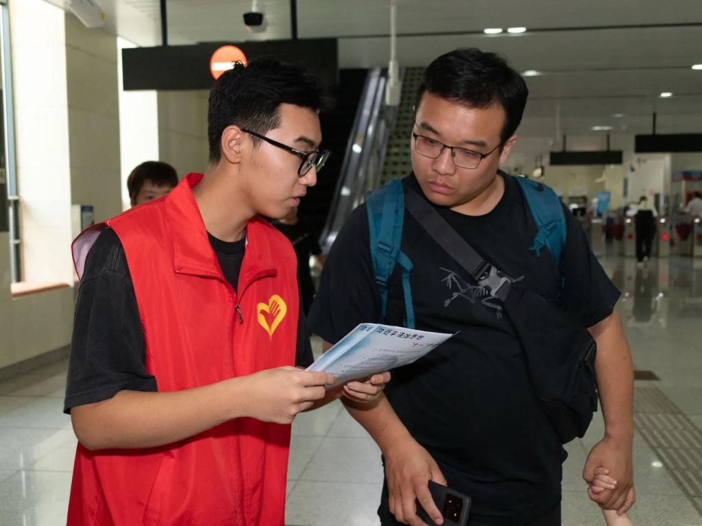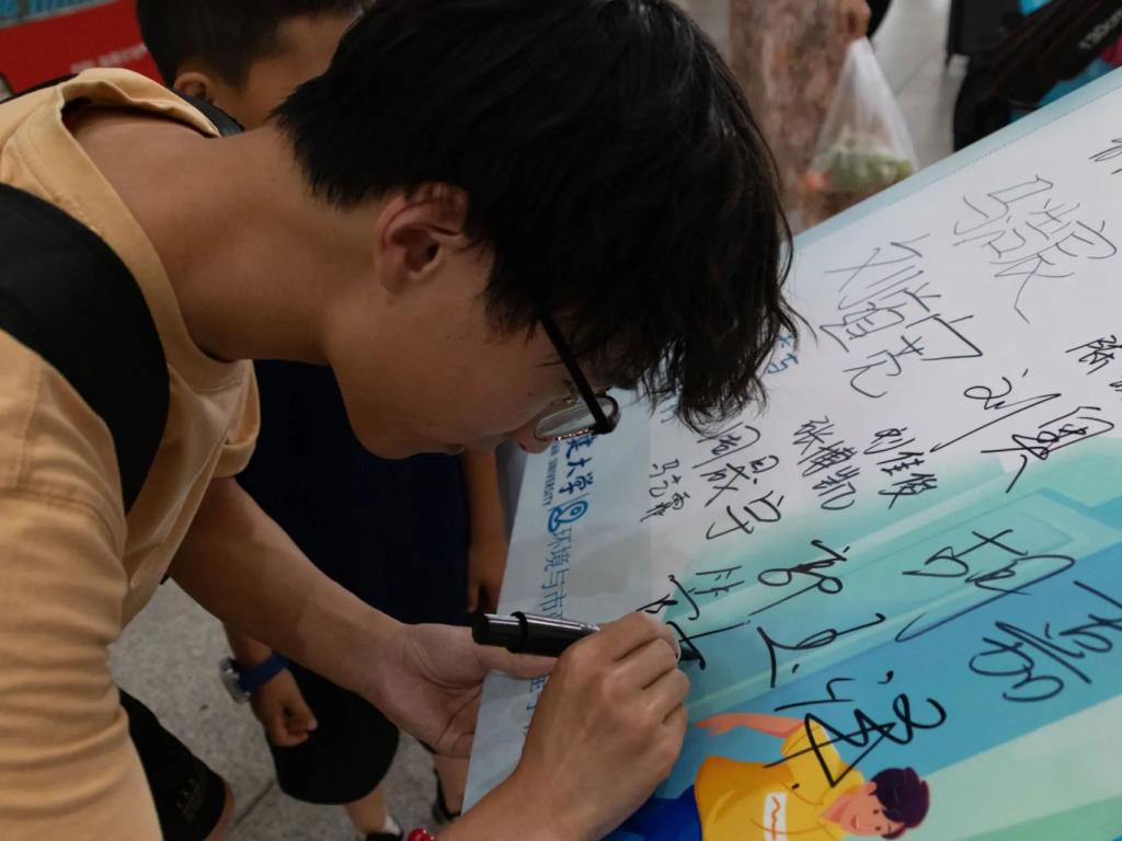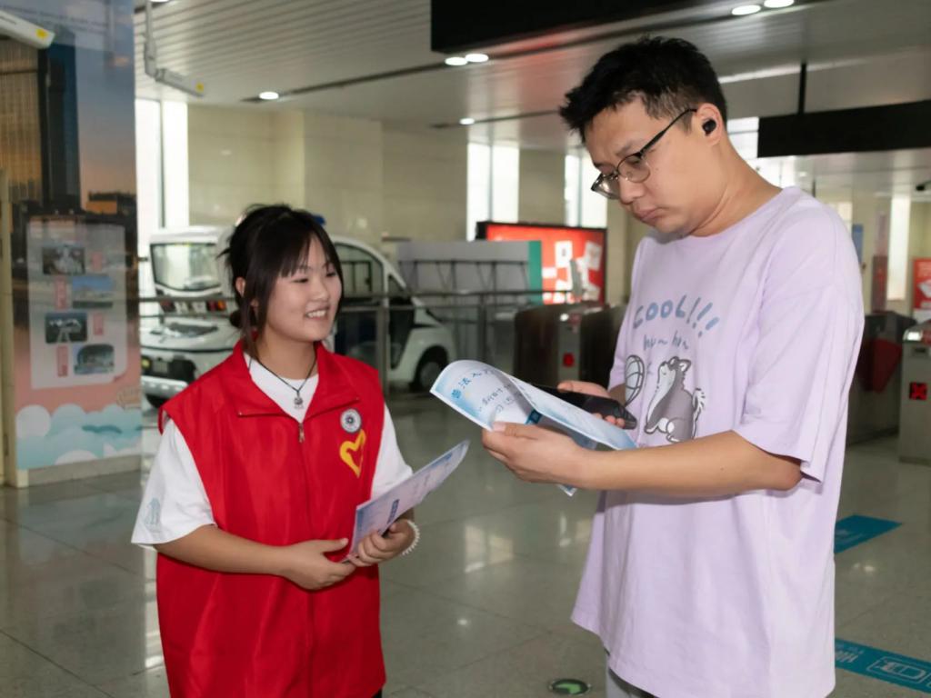 青春靓丽的身影、生动有趣的宣讲很快吸引了来往乘客的目光,活动现场热烈而有序,在仔细阅读完宣传材料后,青年普法团成员邀请过往乘客及工作人员在普法横幅及宣传展板上郑重签名,用一个个签名践行一次次庄严承诺,承诺将法治理念融入日常生活。