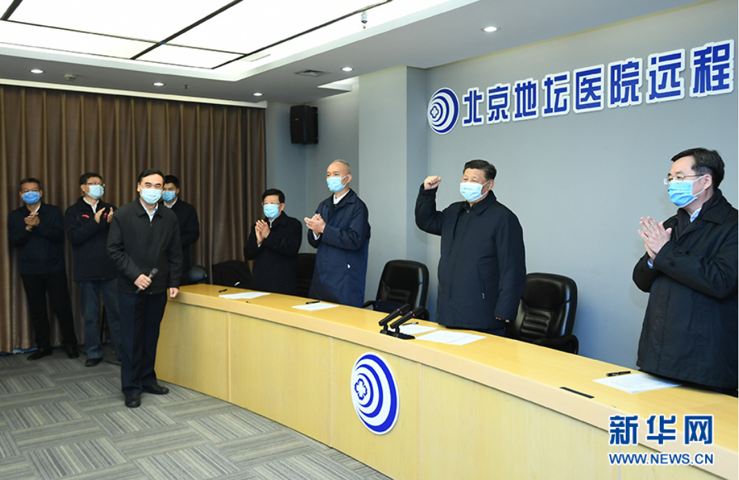 习近平十分牵挂湖北和武汉的疫情。在地坛医院远程诊疗中心,习近平通过视频连线武汉市收治新冠肺炎患者的金银潭医院、协和医院、火神山医院,向疫情防控一线的医务工作者、干部职工和人民解放军指战员了解情况、听取意见和建议。他强调,全国广大医务工作者不忘初心、牢记使命,响应党的号召,义无反顾冲上疫情防控第一线,同时间赛跑,与病魔较量,顽强拼搏、日夜奋战,展现了对党、对人民高度负责的精神面貌。他指出,现在疫情防控正处于胶着对垒状态,广大医务工作者一定要坚持下去,发扬特别能吃苦、特别能战斗的精神,发挥火线上的中流砥柱作用,始终把人民群众生命安全和身体健康放在首位,全力以赴救治患者,打好武汉保卫战、湖北保卫战。